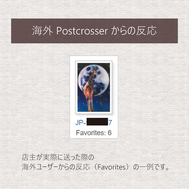 店主が実際に送付した際の反応(Favorites数)を、商品写真の最後に掲載しています。カード選びの参考にご参照ください。